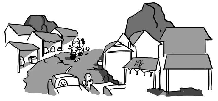 血液海啸汹涌而来,成片的棚屋被连根拔起,残垣断壁汇聚成一个巨大的斑块,随着血流飞了出去