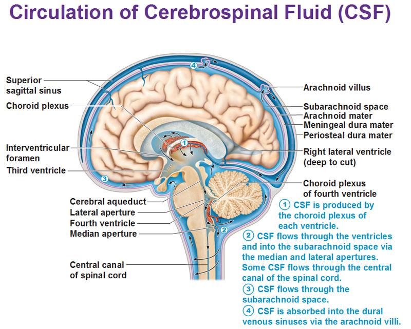 神经科学家们的研究以往并不关注神经系统的组织间隙,尽管在活的麻醉大脑(大部分生理学研究时的状态)中这些组织间隙能占据将近20%的总体积。由于大脑中淋巴系统不够发达,组织间隙便担当了大脑的“清道夫”。大脑的代谢产物由流经组织间隙的脑脊液冲刷带走:由血液过滤而来的脑脊液从脑室的脉络丛泵入大脑,并渗入大脑组织间隙中,最终被泵回大脑外周的脑脊膜血管内。(图1)